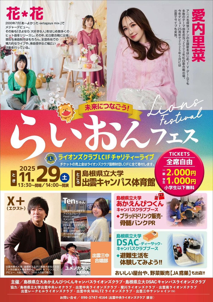 11/29(土)開催・島根県「未来につなごう〜らいおんフェス〜」に出演します!